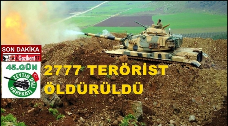 Türk Silahlı Kuvvetleri (TSK) Afrin'de yürütülen Zeytin Dalı Harekatı kapsamında etkisiz hale getirilen terörist sayısının 2777 olduğunu açıkladı.