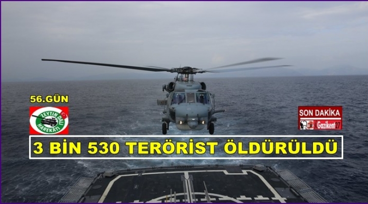 Türk Silahlı Kuvvetleri (TSK) Afrin'de yürütülen Zeytin Dalı Harekâtı'nın 56. gününde etkisiz hale getirilen terörist sayısının 3 bin 530 olduğunu açıkladı.