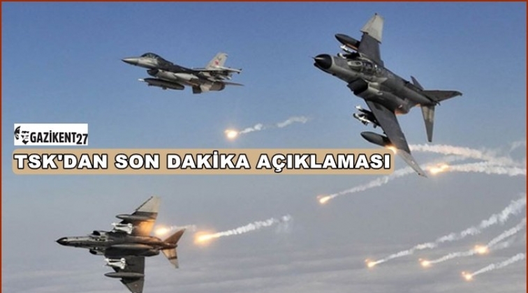 TSK'dan yapılan son dakika açıklamasında, 'Irak kuzeyi Zap ve Hakkâri sınır bölgelerinde gerçekleştirilen hava harekâtları neticesinde bölücü terör örgütü mensubu 7 terörist etkisiz hale getirilmiştir' denildi.
