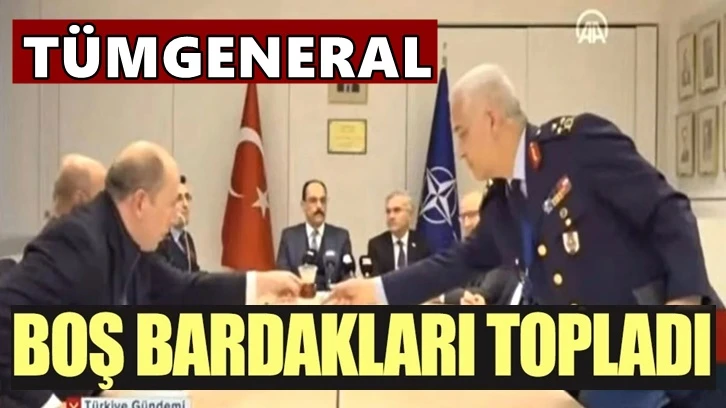 Belçika'nın başkenti Brüksel'de gerçekleştirilen NATO toplantısında TSK'yı temsil eden Tümgeneral Göksel Kahya, boş çay bardaklarını topladı. Ajansların servis ettiği görüntülere sosyal medyada büyük tepki gösterildi.