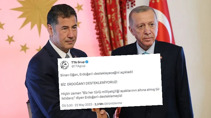 Oğan'ın açıklamasının ardından milliyetçi gruplardan tepkiler gecikmedi. Türküz, Türkçüyüz ve Atatürkçüyüz (TTA) isimli grup, Twitter'dan açıklama yaparak "Sinan Oğan, Erdoğan'ı destekleyeceğini açıkladı! BİZ ERDOĞAN'I DESTEKLEMİYORUZ! Hiçbir zaman "Biz her türlü milliyetçiliği ayaklarının altına almış bir iktidarız." diyen Erdoğan'ı desteklemeyiz!" dedi.