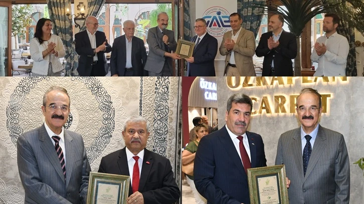 İzmir Halıcılar ve Yer Döşemecileri Derneği Yönetim Kurulu Başkanı Abdullah Naci Ölçen ziyaretin ardından TİM Halı Sektör Kurulu Başkanı Salahattin Kaplan, GAHİB Başkanı Zeynal Abidin Kaplan ve Gaziantep Halıcılar Odası Başkanı Mehmet Törer’e halı sektörüne hizmetlerinden dolayı birer teşekkür plaketi verdi.