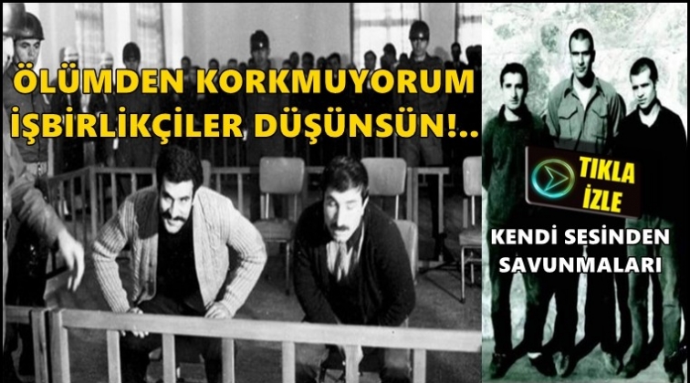 “... İddianameye karşı diyeceklerim mevcuttur. İddianame kelle istemek için hazırlanmıştır. Yapılan tahliller yanlıştır, hatalıdır, değerlendirmeler keza isabetsizdir. Yalnız, biz varlığımızı hiçbir karşılık beklemeden esasen Türk halkına armağan etmiş bulunuyoruz. Türk halkı ve devletin bağımsızlığına armağan etmiş bulunmaktayız. Bu sebeple ölümden çekinmiyoruz. Biz hiçbir zaman bütün çabamıza rağmen Türkiye'nin bağımsızlığını temin edemedik. Bugüne kadar da bu özlem içinde kaldık. İddianamede geçen ve bana atfedilen hükümleri kabul etmiyorum. Ben silahımı halka, orduya karşı kullanmadım. Ancak vatan hainlerine karşı kullanmak maksadıyla taşıdım ve 'halka ve orduya karşı kullanırım' şeklinde beyanda bulunmadım. Öteden beri arzetmiş olduğum gibi bu ülkede anayasayı en fazla savunanlar bizleriz. Anayasa'yı ihlal edenlerse ortadadır. Anayasa'nın uygulanmasını isteyen gene bizleriz. Anayasa'yı uygulamayan yavuz kimseler de hala ortadadır. Yine o kişiler bizim kellemizi istemektedirler. İddia makamı bizim vermekte olduğumuz bağımsızlık savaşına karşıdır. Türkiye Cumhuriyeti'nin hukukuna karşı, reformlara karşıdır. Onlar 36 milyonluk ülkenin bütün yükünü 20 gencin üzerine yıkmaya çalışmışlardır. Bizi bağımsız bir ülkenin çocukları olmaktan mahrum eden hepiniz dahil sizlersiniz. Ve sonunda idam isteğiyle buraya getirildik, Türkiye'nin bağımsızlığından başka hiçbir şey istemedik ve hayatımızı bu yola koyduk. Varlığımızı Türkiye halkına armağan ettik, bunun aksini iddia edenler vatan hainidir. Biz stratejik olarak düşüncelerimizi hiçbir zaman saklamayız. Hangi şartlarda olursak olalım bunu açıkça söyleriz. Düşüncelerimizi mezara kadar götürürüz. Nasıl burada namluların ve dipçiklerin gölgesi altında konuşuyorsak, düşüncelerimizi her zaman açıkça ifade ederiz. Tarih evvelce bunu yapanları nasıl temize çıkarmışsa bizi de temize çıkaracaktır, buna da inanıyoruz. Profesyonel devrimci bugünün Türkiye'sinde kendini hayatı boyunca Türkiye'nin bağımsızlığına adayan kimsedir. (İddianamede) 'fikir özgürlüğünü ve anayasayı paravan yapanlar, önceleri Atatürkçü geçinirken onun fikir ve şahsiyetiyle küçük görmeye başladılar' şeklinde ve 'sadece Mustafa Kemal tarafını beyan ediyorlardı' şeklinde bir cümle mevcuttur, bunu kesin olarak reddediyorum, asla kabul etmiyorum. Diğer yurtseverler de bunu kabul etmezler. Bu kasten tahrif edilmek isteniyor. Bu cümle art niyetle hazırlanmıştır. Bu memlekette Mustafa Kemal'e gerçekten sahip çıkanlar varsa onlar da bizleriz. 35 milyon metrekare vatan toprakları işgal altındayken, bizim milli bütünlüğü bozmakla suçlanmamız gülünçtür. Mustafa Kemal sağ olsaydı bugün çok şaşırırdı. Hareketimiz tamamen anayasal bir harekettir. Anayasamızın başlangıç ilkesinde belirtilen ulusun zulme karşı direnme hakkını kullandık. Bu sebeple anayasal bir davranışta bulunduk. Yaptıklarımızın haklı olduğuna inanıyorum.