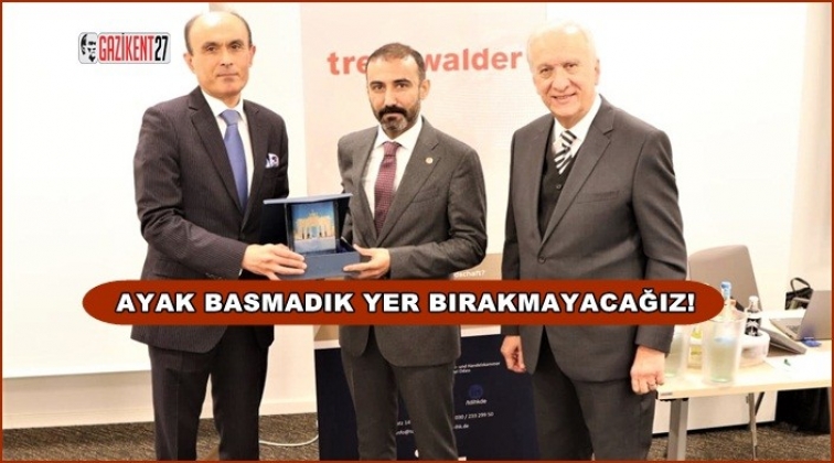 Türk-Alman Ticaret ve Sanayi Odasıyla düzenlenen iş birliği toplantısında da konuşan Yıldırım, Gaziantep ekonomisi, sunduğu fırsatlar, yapılabilecek iş birlikleri ve yatırımlar hakkında bilgiler vererek, GTO’nun da üyesi olduğu Odada gösterilen misafirperverlikten ve desteklerinden dolayı TD-IHK Genel Sekreteri Okan Özoğlu ve Münih Başkonsolosu Mehmet Günay’a teşekkür etti.
