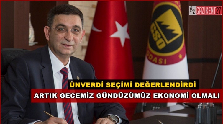 Gaziantep Sanayi Odası (GSO) Yönetim Kurulu Başkanı Adnan Ünverdi, 31 Mart Mahalli İdareler Seçimlerinin Ülkemize, Gaziantep’e ve Milletimize hayırlı olmasını dileyerek, “Ülkemiz demokratik bir seçimin ardından yeni bir sürece girmiştir. Seçimler artık gündemimizden çıkıyor ve önümüzde dört buçuk yıllık, kesintisiz bir dönem var. Artık ekonomiye odaklanmalı, gecemiz gündüzümüz ekonomi olmalıdır” ifadelerini kullandı.