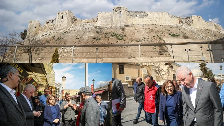 Gaziantep Büyükşehir Belediye Başkanı Fatma Şahin ve Gaziantep Valisi Davut Gül, şiddetli depremlerden etkilenen tarihi yapıların son durumu hakkında incelemelerde bulundu.