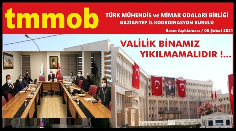 Türk Mühendis ve Mimar Odaları Birliği (TMMOB) Gaziantep İl Koordinasyon Kurulu, valilik binasının yıkılmaması gerektiğini belirterek yazılı bir açıklama yaptı.