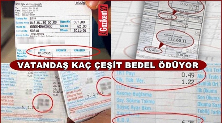Vatandaşın ödediği her faturada en az 2-3 kalem “bedel” ücreti bulunuyor. Su faturasında 3, elektrik faturasında 6 çeşit bedel var.