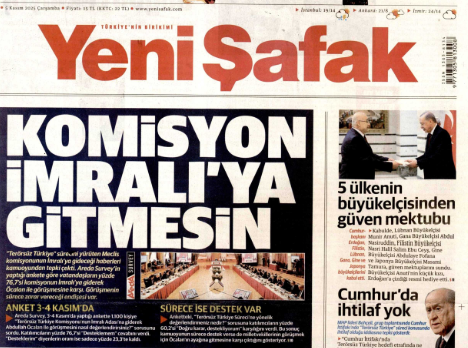 Yeni Şafak gazetesi bugün, "Komisyon İmralı'ya gitmesin" başlığı ile çıktı.