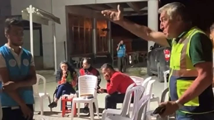 "Biz dünden beri orman bölgesine su yemek yağdırıyoruz siz kimi kandırıyorsunuz. Tonlarca su var ya. Burası siyaset yapma yeri değil! Ciğerimiz yanarken birisi siyaset yaparsa, MHP, CHP, AKP kim olursa olsun halk bunun cezasını verir. Döner misin arkanı! Ne yazıyor burada gelin çekin arkadaşlar... 'AK GENÇLİK' "