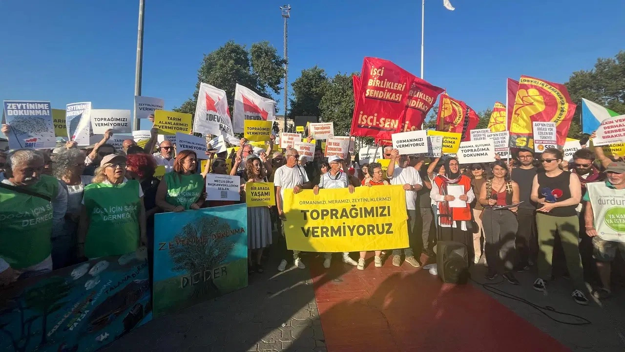 Zeytinliklerin ve doğal alanların madencilik faaliyetlerine açılmasını öngören ‘Talan Yasası’na’ karşı Çevre Mühendisleri Odası (ÇMO), 50’den fazla sivil toplum kuruluşu ve yurttaşlar Kadıköy’de bir araya geldi. İktidara “Toprağımızı vermeyeceğiz” diyerek sesle