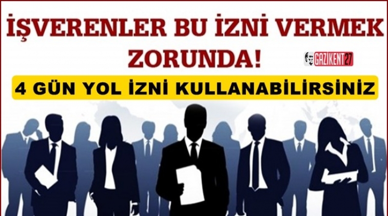 İş kanununa göre çalışanlar yıllık izinlerine ek olarak, tatillerini geçirecekleri şehre göre (mesafe) yol izni kullanabilir. Üstelik bu izin 4 güne kadar çıkabiliyor. Ancak bu haktan çoğu çalışanın haberi bile yok.