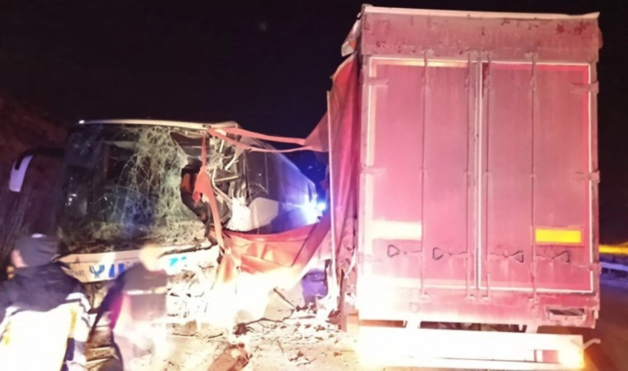Henüz belirlenemeyen bir nedenden ötürü yaşanan kazada yolcu otobüsüyle TIR kafa kafaya çarpıştı. Kazada 18 kişi yaralandı.