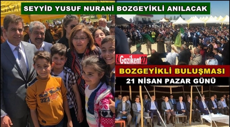 Bozgeyik ailesinin ecdadı, Zeynel Abidin Hazretlerinin torunu ve Hacı Bektaş-ı Veli'nin talebesi Seyyid Yusuf Nurani Bozgeyikli, 21 Nisan Pazar günü Gaziantep'in Oğuzeli ilçesi Devehöyük Köyü'nde düzenlenecek törenle anılacak.