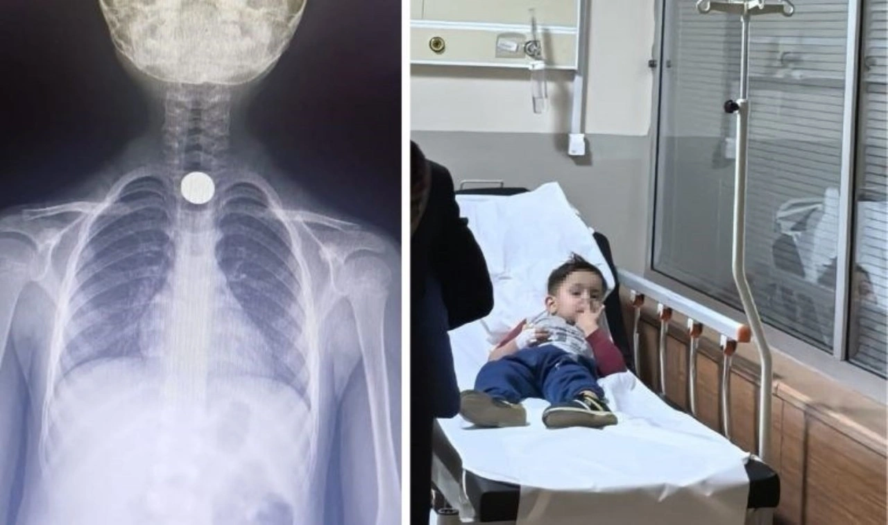 Bursa'nın İnegöl ilçesinde Yusuf Z.'nin (5) yemek borusuna takılan madeni para, operasyonla çıkartıldı.