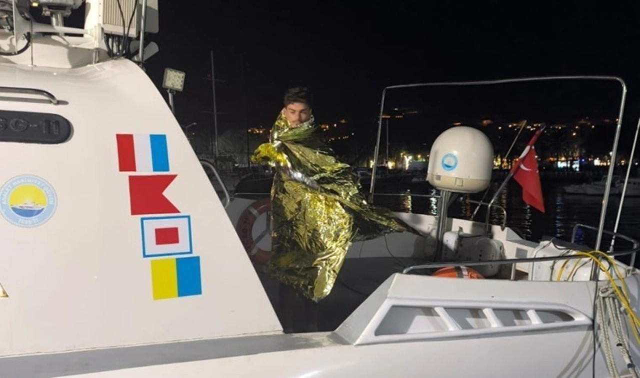 Muğla'nın Bodrum ilçesi açıklarında yüzerek Yunanistan'a geçmeye çalışan düzensiz göçmen kurtarıldı.