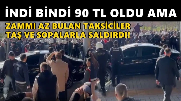 Grup, taş ve sopalarla binanın camlarını kırdı. İçeriye girmeye çalışan taksicilere çevik kuvvet ekipleri müdahale etti.