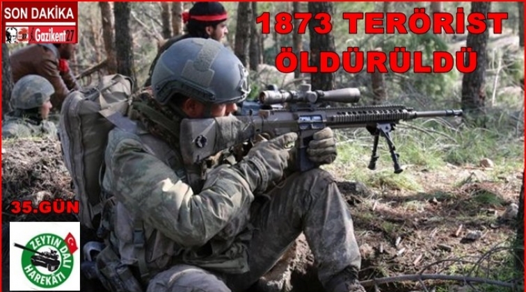 Türk Silahlı Kuvvetleri (TSK), Afrin'de yürütülen Zeytin Dalı Operasyonu'nda etkisiz hale getirilen terörist sayısı 1873 olarak açıkladı.