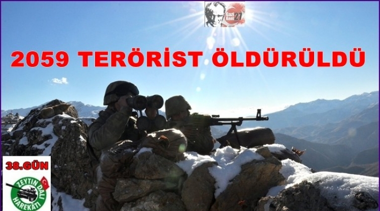 Türk Silahlı Kuvvetleri (TSK) Afrin'de yürütülen Zeytin Dalı Harekâtı kapsamında etkisiz hale getirilen terörist sayısının 2059 olduğunu açıkladı.