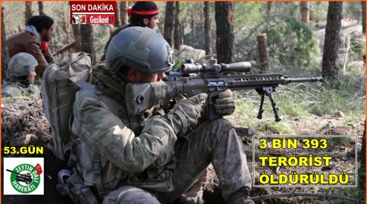 Türk Silahlı Kuvvetleri (TSK) Afrin'de yürütülen Zeytin Dalı Harekâtı'nda etkisiz hale getirilen terörist sayısının 3 bin 393 olduğunu açıkladı.