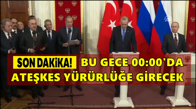 Cumhurbaşkanı Erdoğan, “Rusya ile aramızdaki iş birliği ruhu bugüne kadar Suriye'deki ihtilafa son verilmesine yönelik uluslararası çabalara emsalsiz bir katkı sağlamıştır. Siyasi süreç ve Fırat'ın doğusu gibi boyutları da bulunan çalışma ilişkimizi derinleştirerek sürdürmeyi arzu ediyoruz. Bu hususta bizimle hemfikir olduğuna inandığımız Rusya'nın, rejimin iş birliğimizi zedeleyecek eylemlere göz yummayacağına inanıyorum. Bugünkü görüşmelerimiz İdlib sahasında attığımız adımları masadaki çabalarımızla pekiştirerek bölgedeki soruna kalıcı çözüm bulma irademizin bir tezahürüdür. Öncelikle en kısa sürede ateşkesi gerçekleştirecek, ardından birlikte kararlaştıracağımız diğer adımları süratle atacağız. Bu gece saat 00.01, yani tam gece yarısı itibariyle ateşkes yürürlüğe girecektir. Ateşkesin kalıcı hâle getirilmesi için gereken çalışmalar hızla ve etkin şekilde yürütülecektir. Amacımız bölgedeki insani krizin daha da kötüye gitmesini önlemektir. İhtiyaç sahibi tüm Suriyelilere ön şartsız ve ayrım gözetilmeksizin yardım sağlanması için birlikte çalışacağız. Ülke içinde yerinden edilmiş kişilerin güvenli ve gönüllü olarak ikamet yerlerine geri dönüşlerinin kolaylaştırılasını temin edeceğiz” diye ekledi.